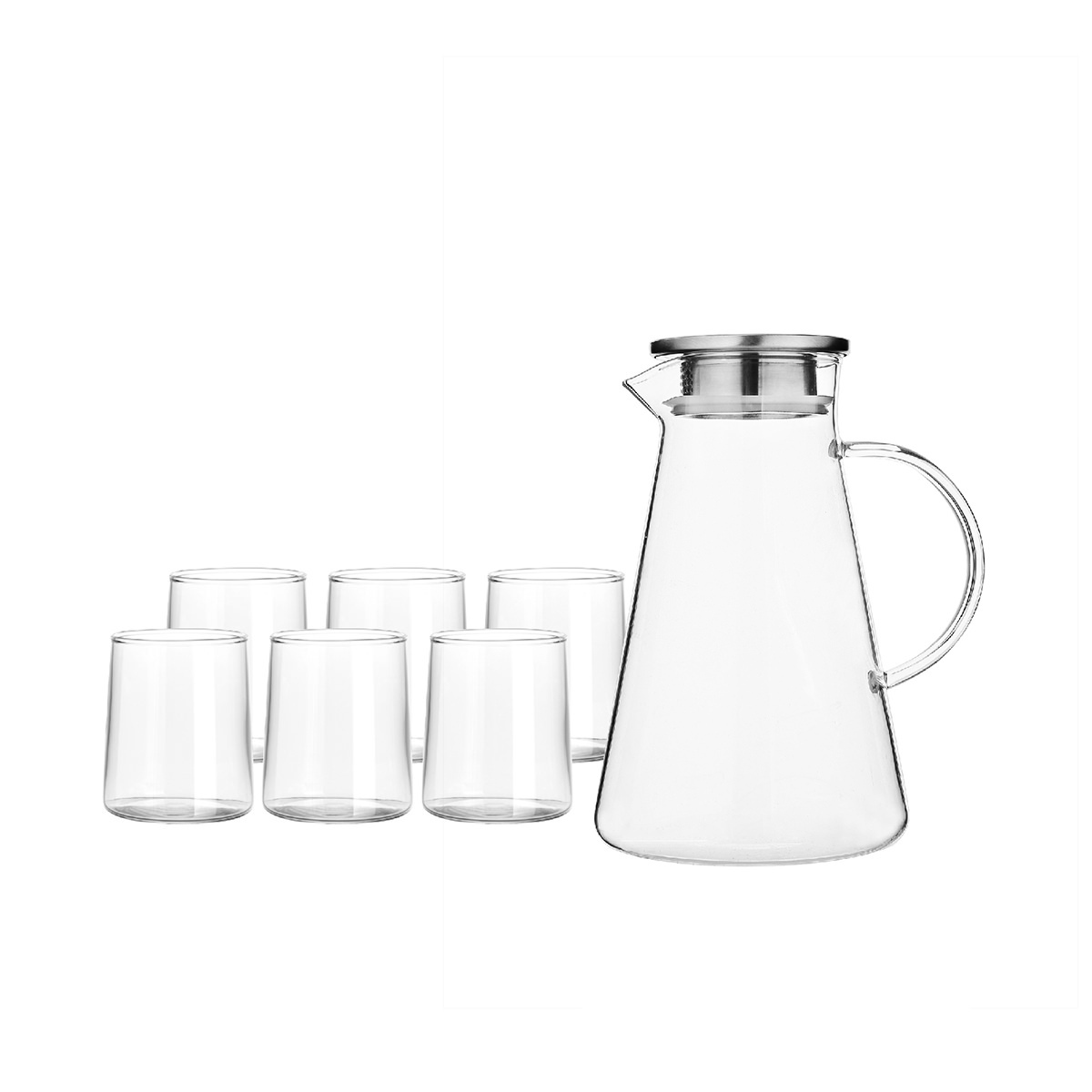 با سرویس ۷ پارچه دِلی، لحظههای پذیراییات را به تجربهای دلنشین و شیک تبدیل کن. این مجموعه شامل یک پارچ شیشهای با طراحی ارگونومیک و شش لیوان هماهنگ است که هم برای نوشیدنیهای سرد و هم گرم مناسباند.