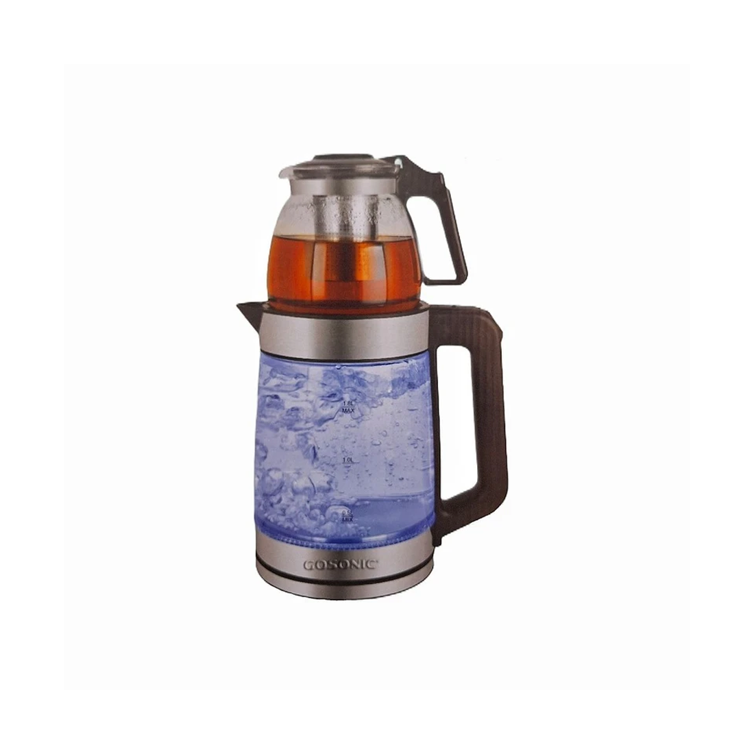 توان مصرفی ۲۰۰۰ وات، کتری شیشه ای مقاوم در برابر شوک حرارتی با گنجایش ۱.۸ لیتر، قوری شیشه ای با صافی تمام استیل با گنجایش ۱ لیتر، چرخش ۳۶۰ درجه کتری بر روی پایه، قطع کن خودکار در زمان بی آب بودن دستگاه، سیستم گرم نگه دارنده اتومات، دارای درب مجزا جهت استفاده بعنوان کتری برقی